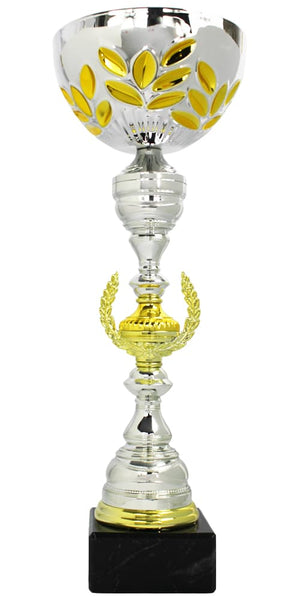 Mit seiner imposanten Höhe von 43 cm, den goldfarbenen Lorbeer-Details und dem eleganten Silber-Design ist dieser Pokal ein echtes Highlight jeder Siegerehrung.