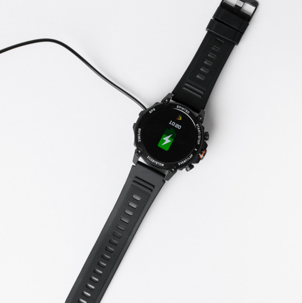 Möchten Sie noch mehr sparen? Aktivieren Sie Funktionen wie „Turn the wrist“, um das Display automatisch abzudimmen – so kommen Sie auf bis zu 15 Stunden Nutzung. Die Uhr wird mit der mitgelieferten Ladeschale geladen, und der Batteriestatus ist jederzeit klar auf dem Display sichtbar.